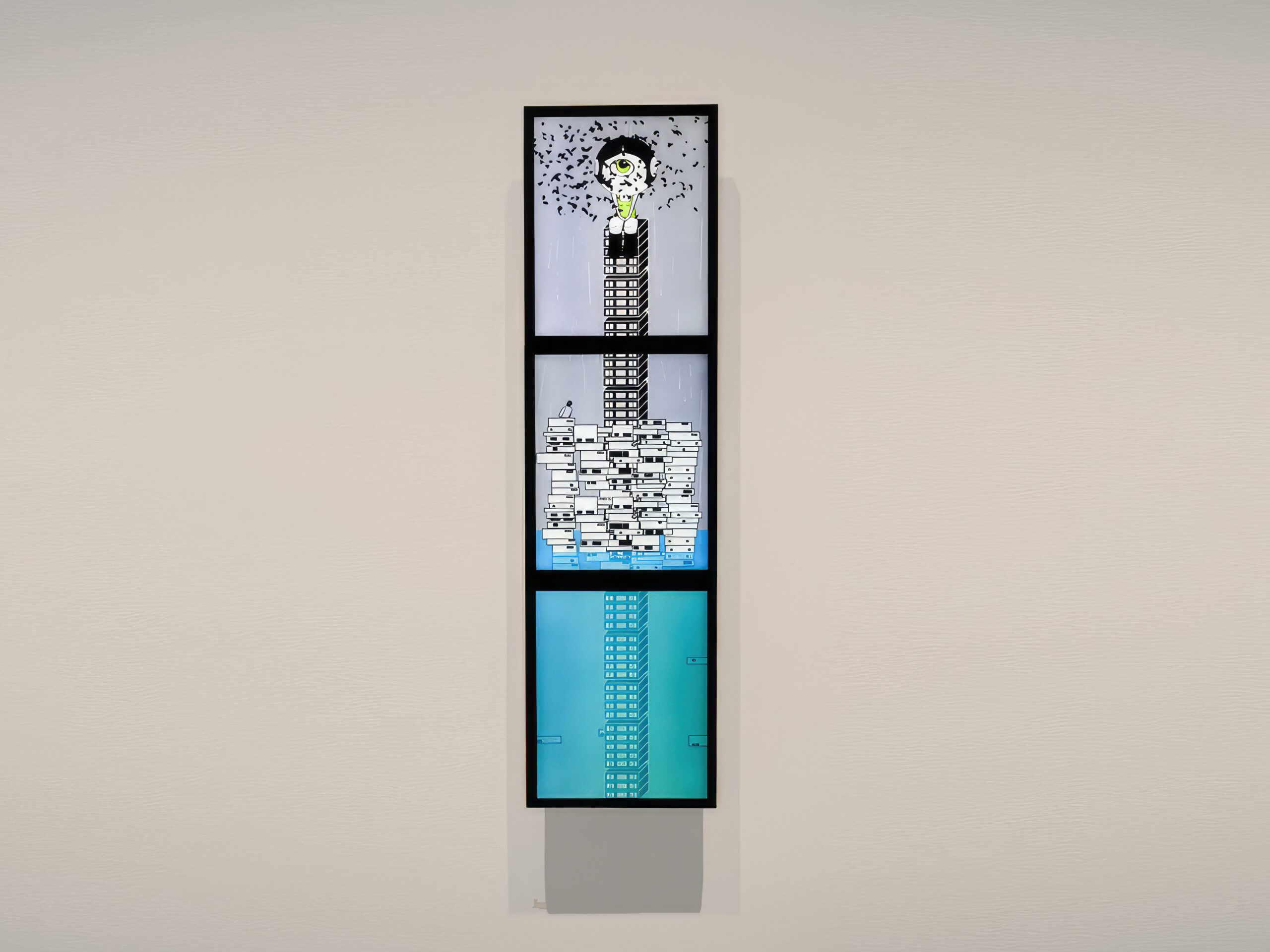 Boom!Darling is part of a series of animated paintings whose themes circulate around apocalyptic fantasies of the deluge and climate change, of water, ice, animals, and humans.
