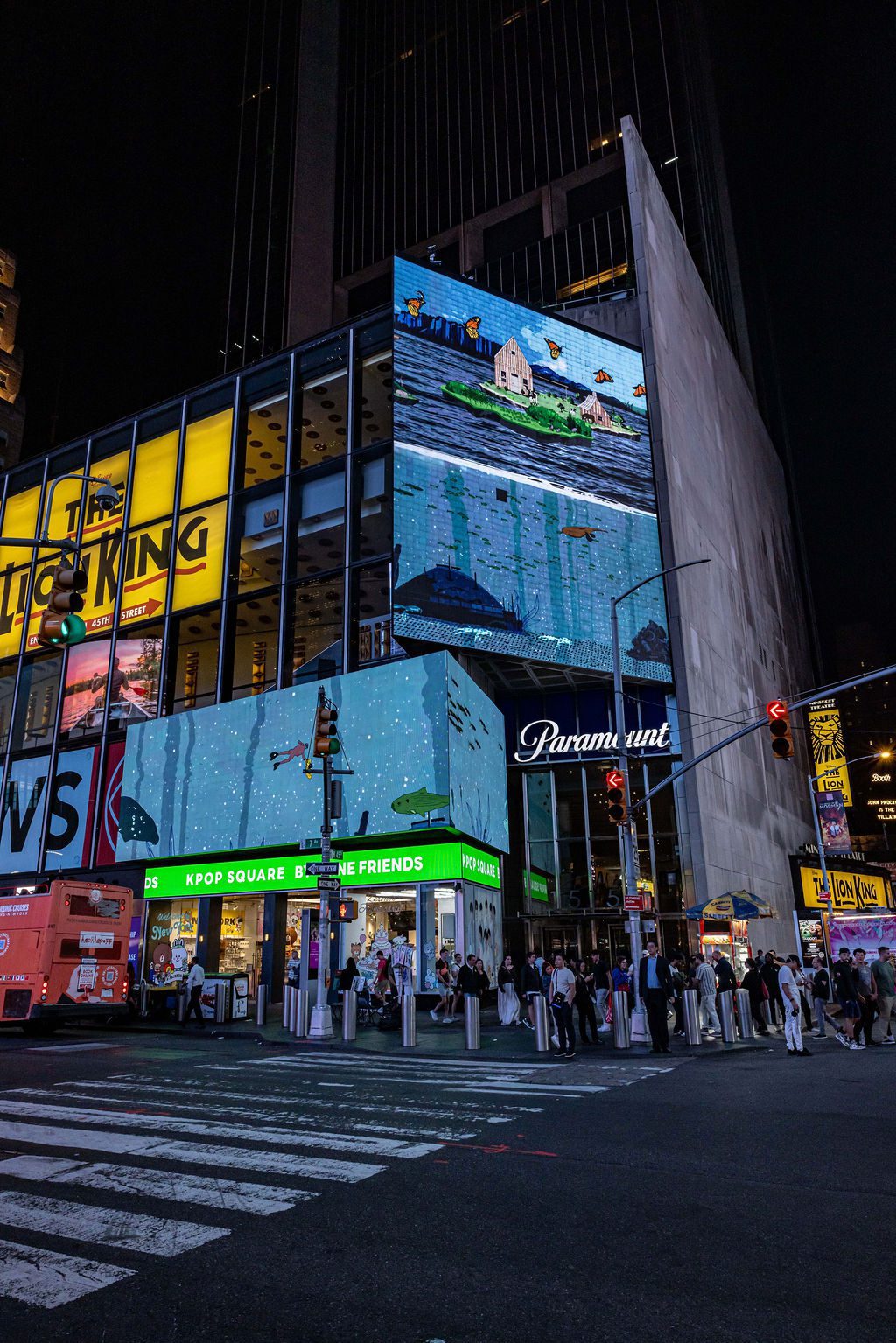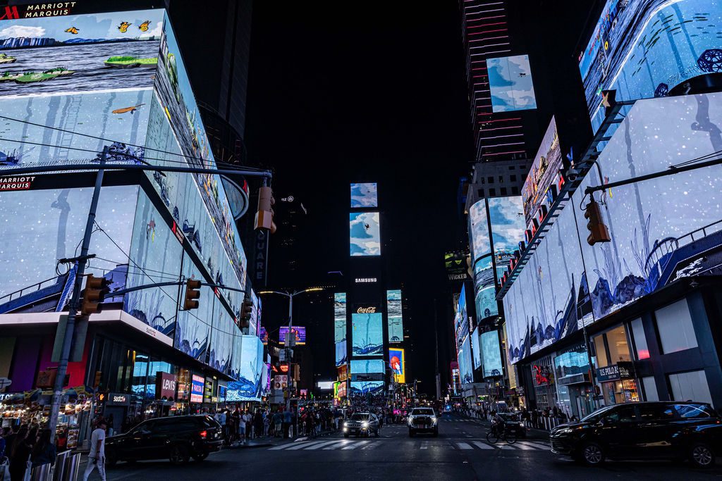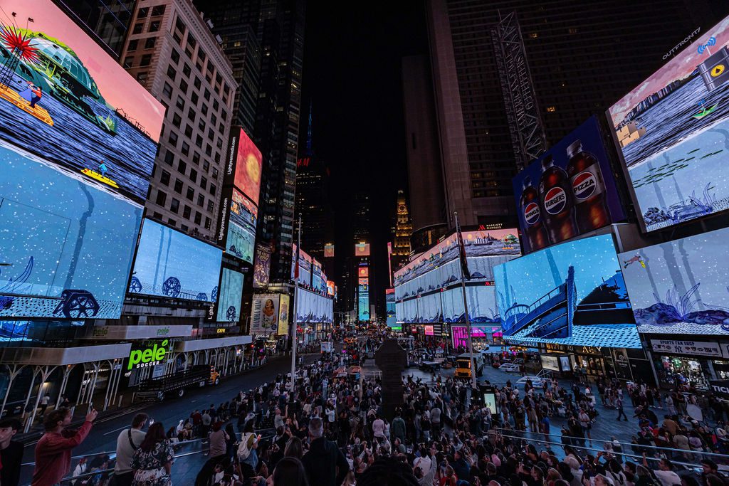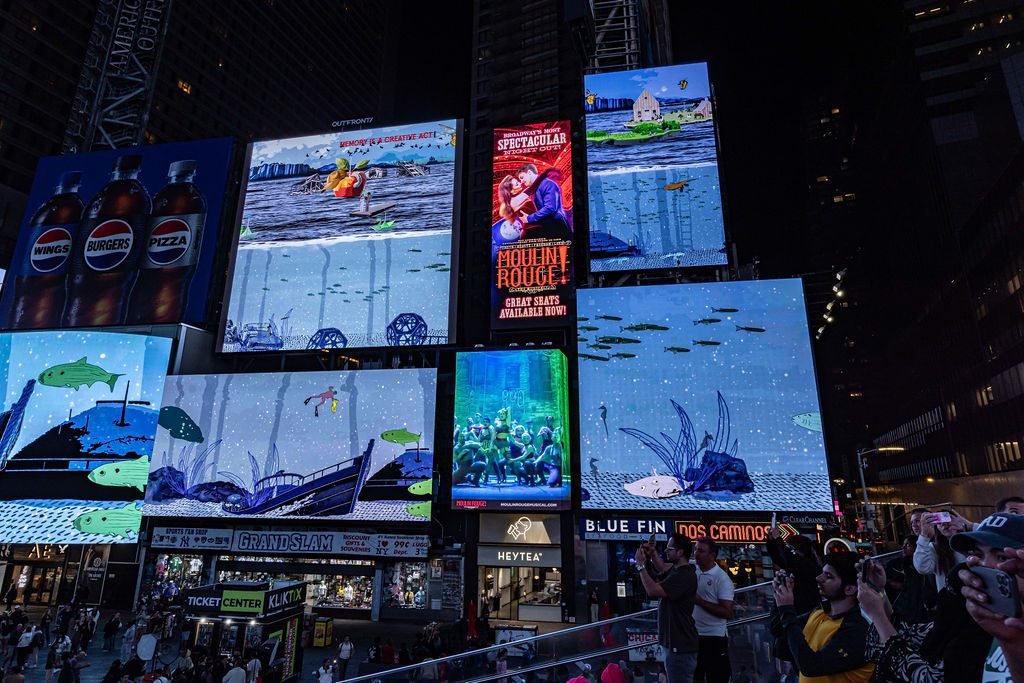 Co-presented by Times Square Arts, the Whitney Museum of American Art, and The Armory Show, Zurkow and Schmitz’s The River is a Circle (Times Square Edition) is a special edit of the longer piece titled The River is a Circle (2025), made in collaboration with Schmitz and Blake Goble, and on view at the Whitney through January 11, 2026 as the second Hyundai Terrace Commission. Part of Zurkow’s solo exhibition Parting Worlds, the large-scale animation is driven by algorithmic probability and real-time weather and marine traffic with a custom software system that continuously reflects New York City’s current meteorological conditions and seasons.
